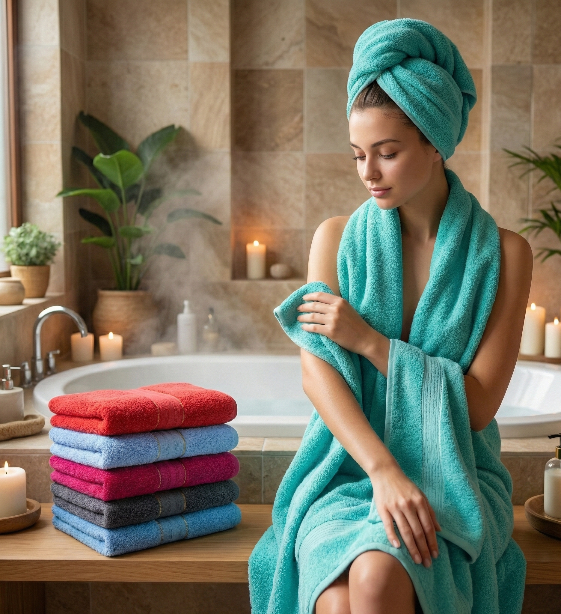 Referencia STTB-A9044B • Gramaje 370 g • Medida 68 × 138 cm • 100% algodón • Colores 6. Ideal para hotelería, dotación y reventa.